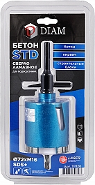 Цена и технические характеристики алмазной коронки для подрозетников по бетону с переходником M16/SDS+ Diam STD Бетон 72 мм:
