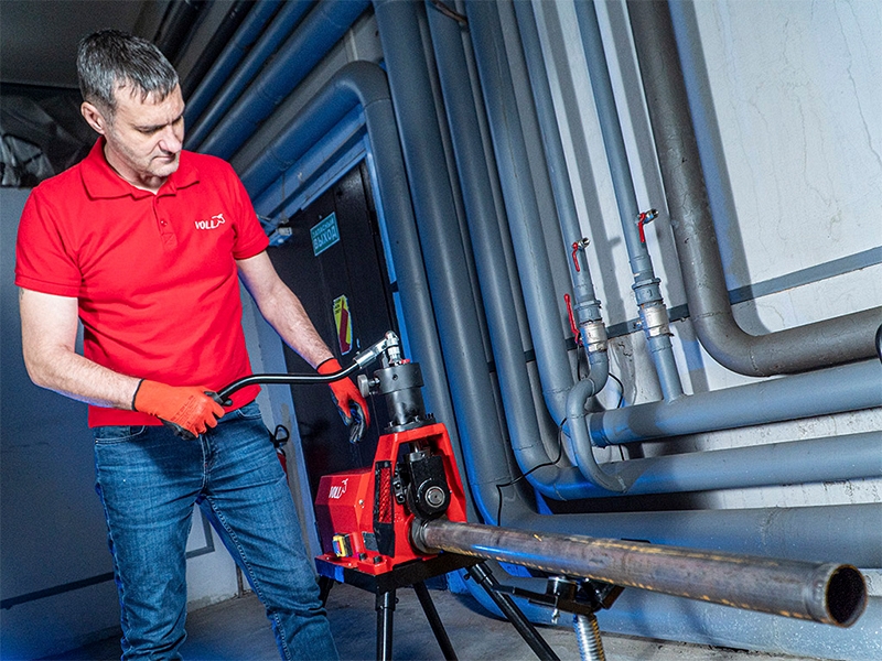 Желобонакатный станок Voll V-Groover 1-6 (Волл В-Грувер 1-6) – электрогидравлический грувлочный станок для накатки желобков на стальных трубах Ø 1" – 6". Используется при монтаже без сварки трубопроводных систем водоснабжения, теплоснабжения, пожарной безопасности, промышленных систем. Может использоваться в цеху и на стройплощадке.